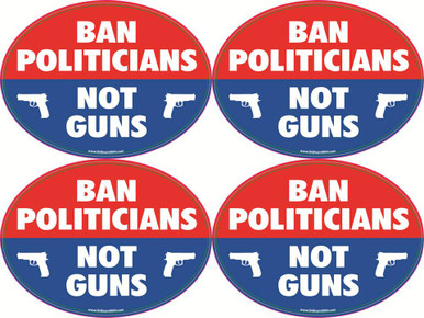 4 PACK - "BAN POLITICIANS NOT GUNS" 4x6 Inch Political Bumper Stickers
